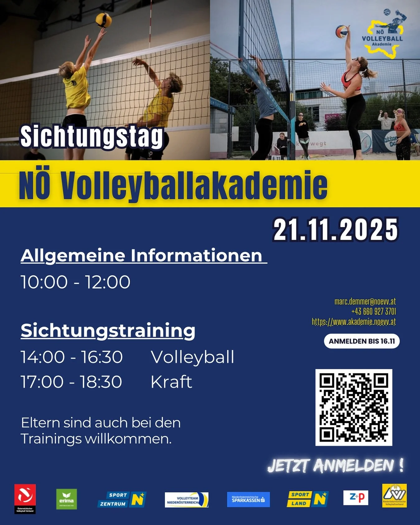 Am 21. November 2025 laden wir alle motivierten Spielerinnen und Spieler der 4. Klasse Unterstufe zum Sichtungstag der NÖ Volleyballakademie ins Sportzentrum Niederösterreich (St. Pölten) ein.